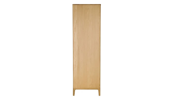 The ercol rimini 2 door wardrobe is contemporary and elegant, highlighting the distinctive grain of the light oak in this wardrobe. The smooth, sculpted or chamfered edge runs vertically through the doors for easy opening. Within the wardrobe is generous storage space for hanging clothes plus a deep drawer to the base.