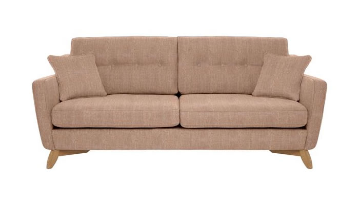 This ercol Cosenza Large Sofa has stylish retro undertones, the deep buttoning in the fibre filled back cushions creates design appeal and comfort. Feather and fibre filled fabric scatter cushions are reversible for even wear. The Cosenza range incorporates show wood oak legs in the under frame available in a light or dark finish. Available in a variety of fabrics from ercol Edit Collection, each piece in the Cosenza range will fit with any décor.