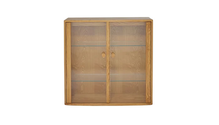 Ercol Windsor Small Display Cabinet The ercol Windsor display cabonet is an elegant freestanding unit with attractive glass shelves and internal lights, offers the perfect display space for your glassware.