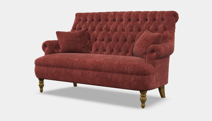 This Wood Bros Pickering three seater sofa features a distinctive silhouette with its stunning tailored design, flowing scroll arms and pleating rounded off buttoning. The sofa offers plenty of support with its sprung high back and the sprung domed seat provides a super comfy sit. Available in an extensive range of beautiful fabrics, optional soft leather custom piping and button trim, the legs are available in a selection of wood finishes. The Wood Bros Pickering full range includes an armchair, two seater and three seater sofas in both fabric and leather.