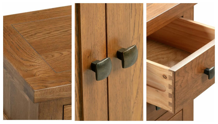 Dorridge Rustic Oak Bedroom Double Wardrobe This Dorridge all-hanging double wardrobe is perfect for full-length clothing items and is built to last, with a single full-width hanging rail. The Dorridge traditional rustic oak range has dovetail drawers and stylish panels with clean straight lines. Finished in a protective dark rustic lacquer and a modern square metal knob.