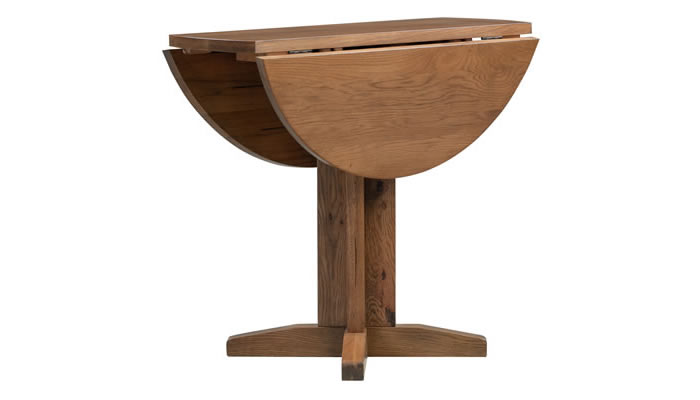 Dorridge Rustic Oak Drop Leaf Table This classy and functional Dorridge drop-leaf table is perfectly suited for smaller rooms or kitchen-diners, designed to fit 4 comfortably when both leaves are raised. The depth of this piece is 30cm when closed and 90cm when open. This table has been made to fit in with any of our Dorridge oak ranges and chairs.