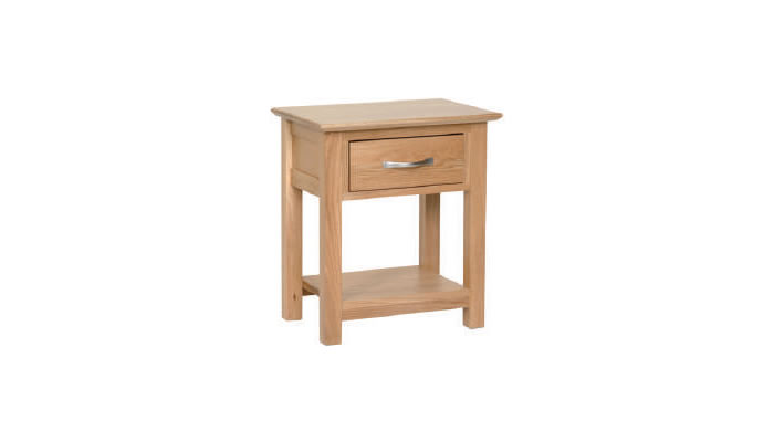 New York Bedroom Night Stand This 1 drawer light oak bedside is a sleeker addition to your bedroom when you don't need the 3 drawers of a traditional bedside, and can also be used as a side table. The contemporary New York Collection is sustainably sourced and uses traditional construction methods such as dovetailed drawers, tongue and groove backs and bases and brushed steel effect metal handles, finished in a protective light natural lacquer.