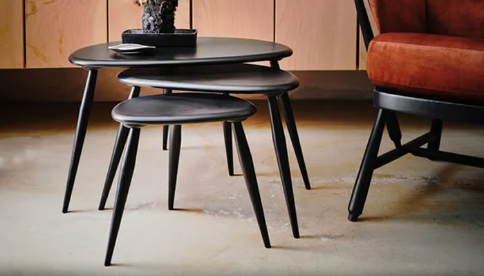 Ercol Ercol Collection Pebble Nest Of Tables This classic piece of furniture comprises three individual tables with the smaller tables slotting neatly underneath the larger ones.