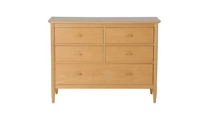 Ercol Teramo 5 Drawer Wide Chest The timeless shaker style design of this ercol five drawer chest of drawers can be easily incorporated into modern or more traditional decor.