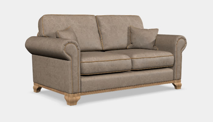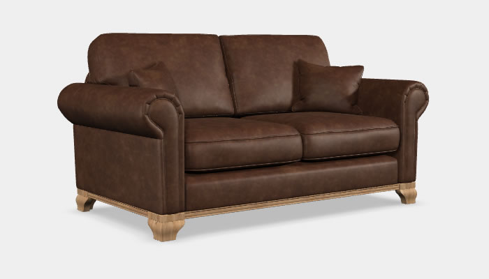 Wood Bros Lavenham Leather Medium Sofa The Wood Bros Lavenham three seater is a traditional style medium sofa which features generous scroll arms and a wooden plinth. Available in a range of quality leathers, optional soft leather custom piping trim and legs in a selection of wood finishes.