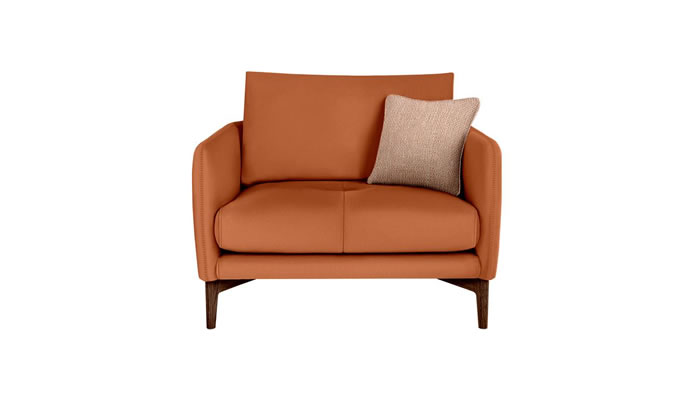 The ercol Aosta chair has contemporary straight lines and smooth rounded edges and corners. Available in a variety of leathers from ercol Edit Collection, one scatter cushion and sold oak legs in a choice of finishes.