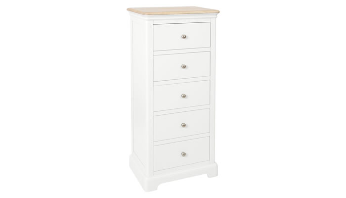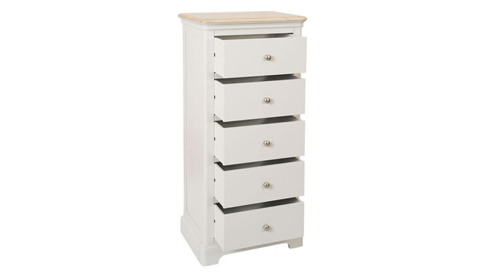 Leamington Painted 5 Drawer Wellington The Signature Collection Leamington painted 5 drawer Wellington adds practical storage to your bedroom using less floor space and is available in grey mist or white.