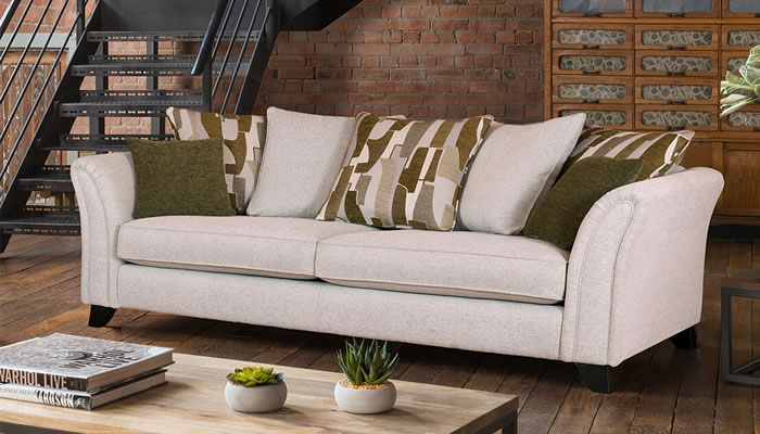 The Alstons Emelia pillow back grand sofa is a simple uncomplicated design without compromise on style or quality for price. Available in a selection of fantastic fabrics that include the latest colour trends and a choice of two leg finishes to match your personal decor.