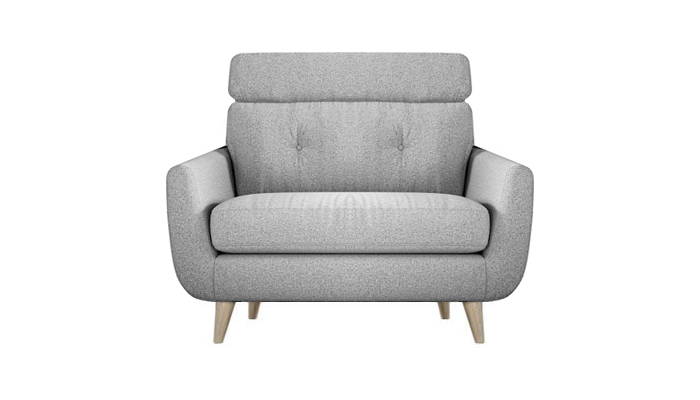 This Signature Collection Salsa Highback Snuggler Chair shows a Danish post war influence in the design with reversible buttoned back cushions and seat cushions which adds extra character. Choose from a selection of modern and exciting fabric options and feet are available in both beech or dark stain.