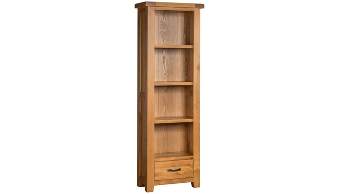Southam Bookcase 600x1800 The Signature Collection Southam Bookcase 600x1800 is made from white oak, chunky top with softened corners, tapered legs, dovetailed drawers and finished in a modern attractive wax.